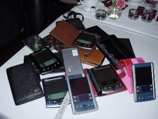 遅れて登場された方々も一息つかれた後、それぞれ自己紹介していただき、その都度「あーあなたが…」とうなづく姿見られます。今回はなんと! 北海道ユーザーグループPUGHのsarahさんも遠方からお越しくださいました。一同、感激。一次会参加者全員揃ったところで、愛用機を一箇所に集めて撮影大会! 目を引いたのは、ykameさん、カヲリさんのオリジナルケース。2つは実に対照的で、そしてそれぞれ個性溢れるものでした。